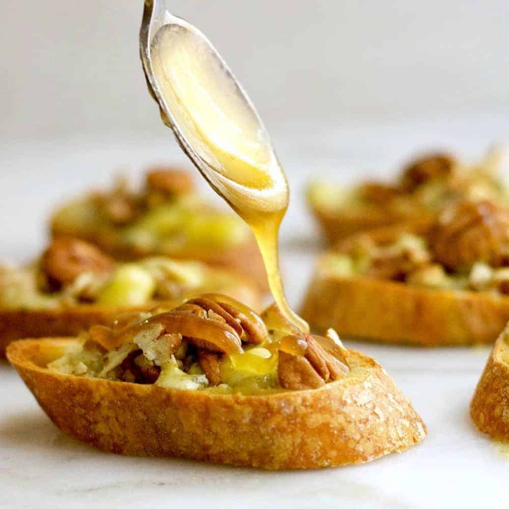 Blue Cheese Crostini with Pecans and Honey